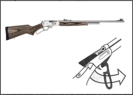 Often it is difficult to tell if a lever-action firearm is loaded. To unload, push the lever downward and