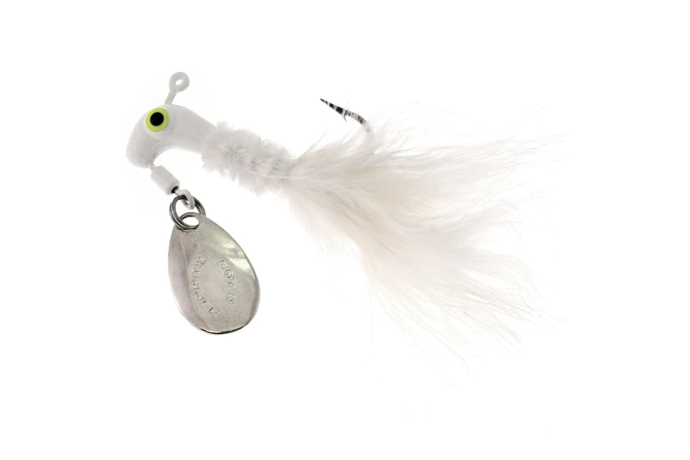 Attract the catch of the day with the Blakemore B2-1002-001 Road Runner Marabou, a small jig with a wooly body. When dropped into brush, it can twitch and will attract anything from crappies to walleye. The subtle white feathers hold the scent in the center, and once latched onto the hook, the roadrunner bait blade rarely tangles with your fishing line. Its position doesn't restrict or hinder hook-ups and is easier for fish to see.