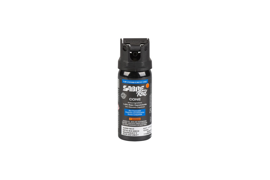 The SABRE RED 1.33% MC 2.0 oz. MK-3 Cone deploys eight (8) full one (1) second bursts at a range of 8 to 10 ft. Includes flip top safety.