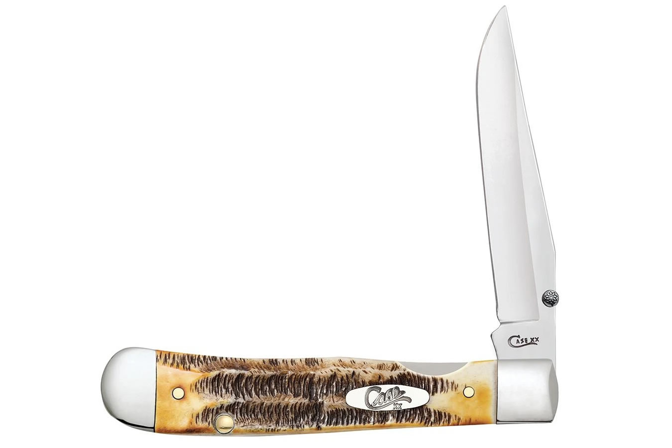 The Case patented Kickstart technology comes alive in the Kickstart TrapperLock, the second knife in our assisted opening line. Using the thumb stud on the polished Clip blade allows easy, efficient opening and locking to get the job done. The Kickstart TrapperLock family includes handles of Bone, Carbon Fiber and Synthetic, and each knife comes complete with thumb stud, nickel silver bolsters and belt clip. Comes conveniently packaged in a velvet box. Made in Bradford, PA, USA from domestic and imported materials.