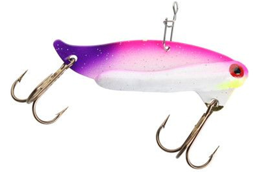 The VibE Blade Bait in Silver is a classic blade bait that has been a top choice for anglers for over 30 years. Made from a special brass alloy, the blade vibrates in the water to create ripples that attract fish. Simply cast and retrieve—the lure does the rest. Equipped with two super sharp split treble hooks, it avoids tangles and makes hook changes easy. Available in 4 sizes and around 20 fish-catching color patterns, the VibE Blade Bait is also highly effective for ice fishing.