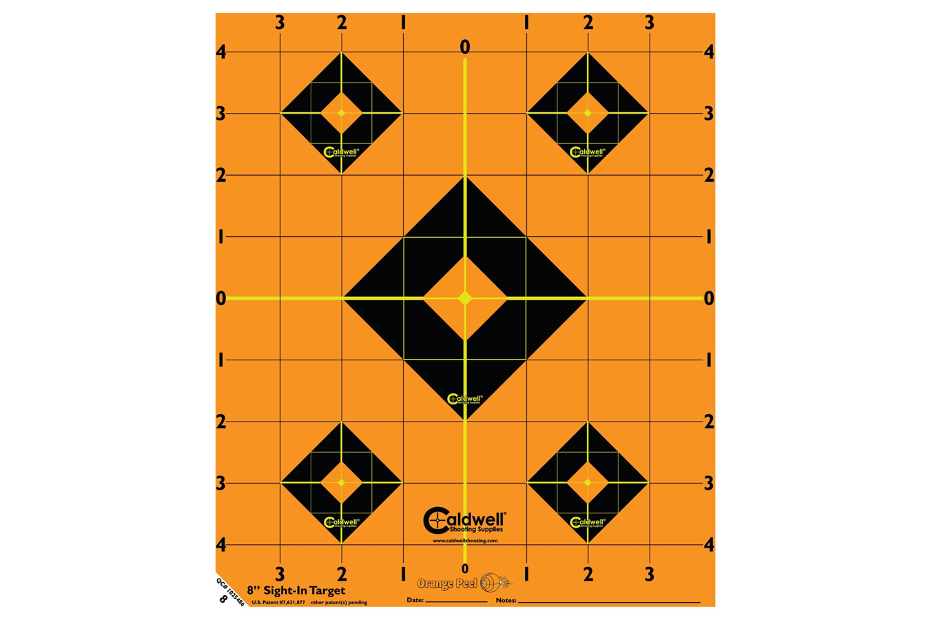 Get on target with Orange Peel Sight-In Targets by Caldwell! Orange Peels let you see hits on and off the target with a dual-color, flake-off coating that makes your hits look like colorful explosions.