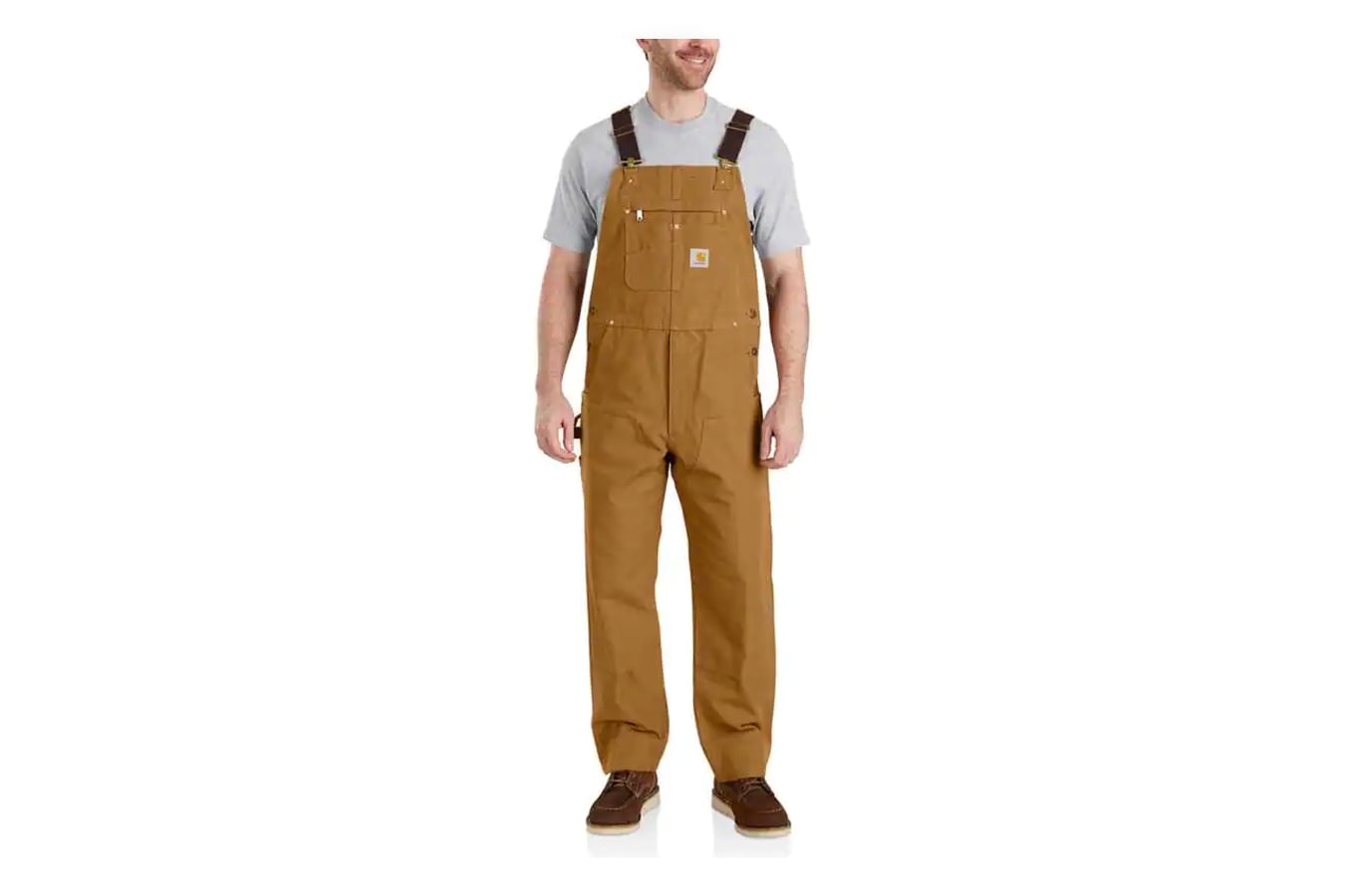 An update to their most popular unlined bib, the R01, these men's overalls were designed using feedback from our Carhartt Crew. Every detail, from the front-to-back kick panel on the cuffs to the extra stretch around the waist, was informed by the hardworking people who wear their gear day-in and day-out. Dependable and durable, the bibs are made with their heavyweight cotton duck. They have elastic suspenders, a double layer at the knees, and ample pockets.