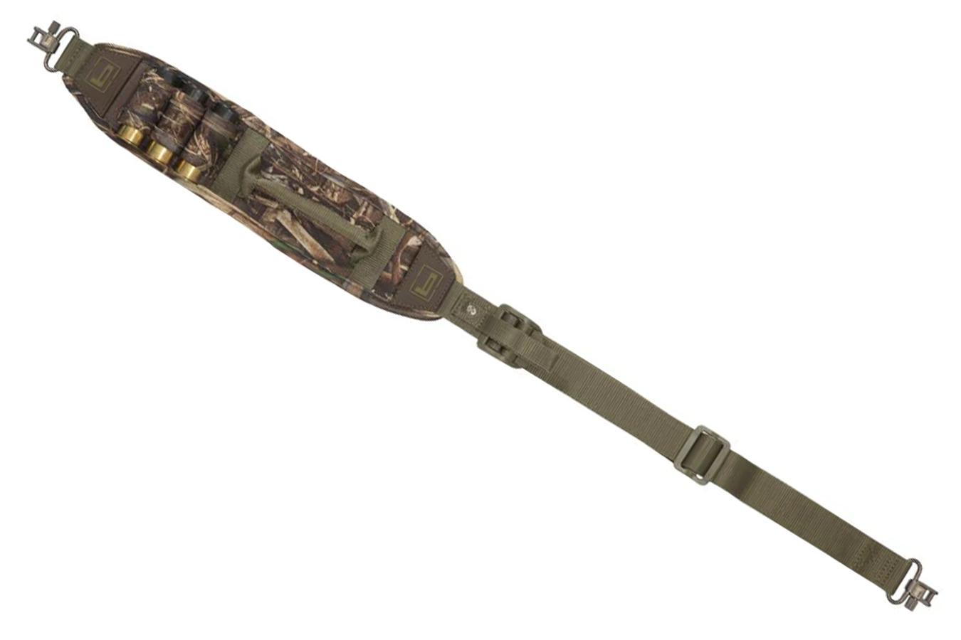 Three shotgun shell holders are built in so rounds are always at your fingertips. ABT shoulder cushions complement heavy-duty neoprene construction in a sling built for function and comfort.