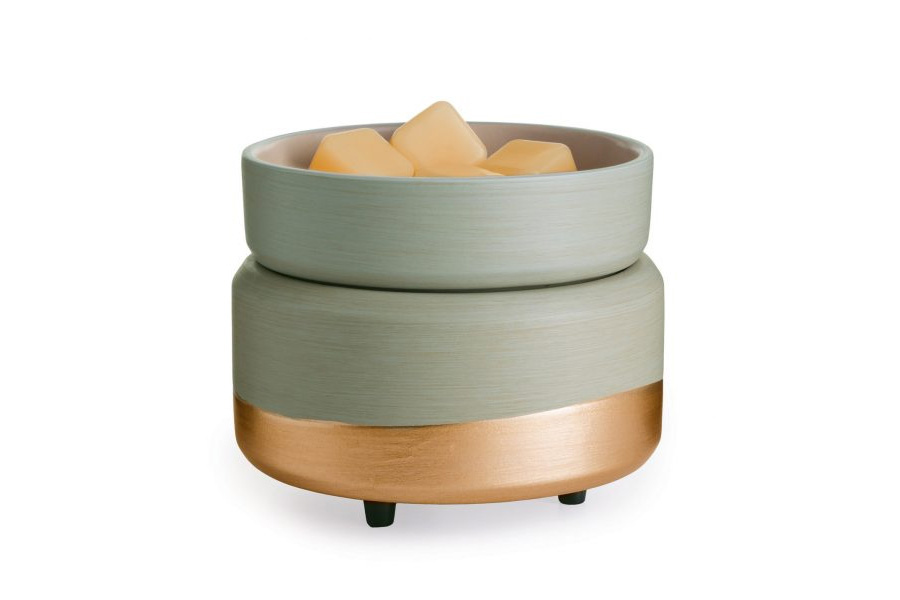 • DESIGN: Grey, beige and green tones brushed together in a unique finish that is hand-applied, then dipped in gold, gives this warmer the Midas touch.
