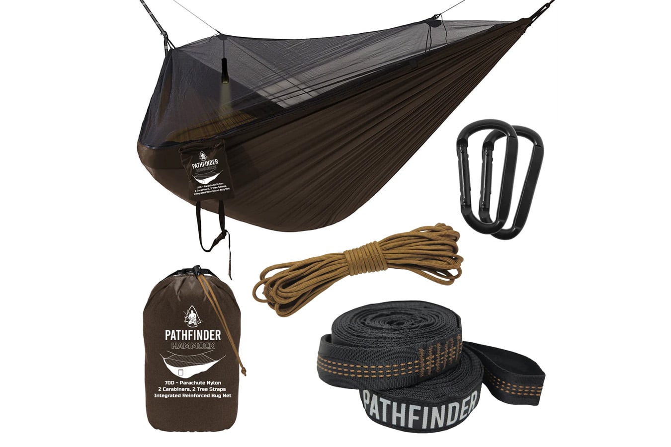 The Pathfinder camping hammock includes an attached bug net that provides ample protection against outdoor pests, allowing you to enjoy spending time in nature without any pesky bug bites.