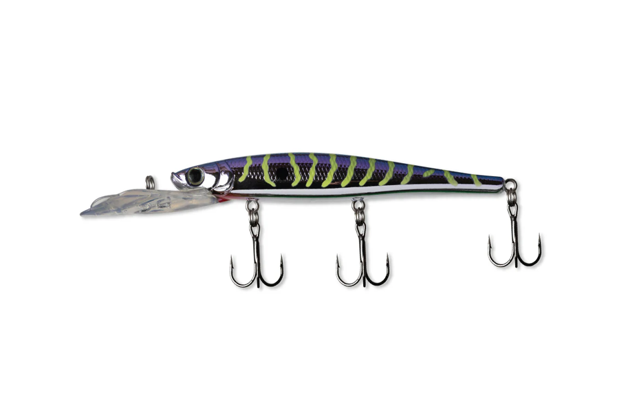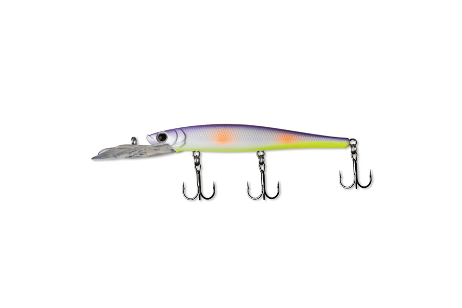 The WalleyeX Brawler features the revolutionary SABRE-LIP technology. This bill design creates an intense head action, producing a massive disturbance trail through the water that predatory fish are unable to resist. The elliptical dimensions of the Brawler’s SABRE-LIP give this bait an incredible side-to-side roll that shows the entire profile of the bait from back to belly as it moves through the water. They've also reimagined the sound chamber, so the stainless-steel rattles deliver maximum sound into the water no matter if you are working the bait fast or slow. Designed specifically for big walleyes this bait is ready to perform from ice-out all the way to ice-up. Each bait is equipped with sharp, high-quality hooks, proven fish catching colors, Ultrasonic welding for years of leak proof use, and built from the highest quality components available.