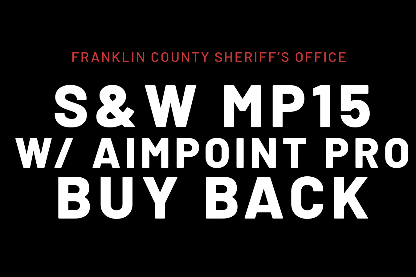 These are S&W M&P15 with Aimpoint Pro Buy Backs reserved solely for the Franklin County Sheriff's Department. No outside sales allowed. If an order is placed by individuals not from the Franklin County Sheriff's Department, your order will be canceled.