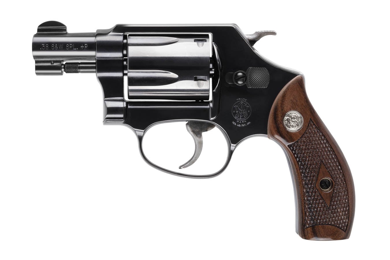 The Model 36, J-Frame revolver pays homage to the most iconic and collectible designs created by Smith & Wesson, now enhanced to meet the demands of todays shooters. Featuring carbon steel barrel; double action/single action; checkered wood grip; fixed blade front sight and rear sight integral slot in frame.
