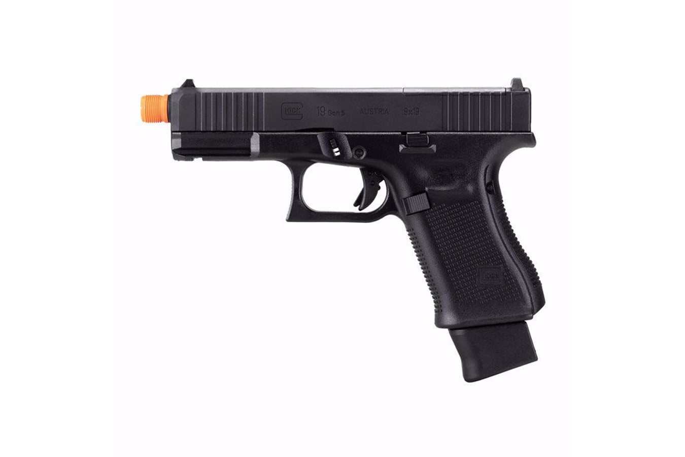 Run only the best with the GLOCK 19 Gen 5 full blowback MOS CO2 powered airsoft pistol. From the top, this G19 has a Modular Optic System (MOS™) ready slide and comes with four (4) optic plates that will accommodate most micro reflex sights on the market, including the Umarex RDS8. Combined with GLOCKs Gen 5 ergonomics, reliable Elite Force CO2 power, and a full-size drop-free 18-round magazine, this full blowback airsoft gun is the best choice for your CQB adventures and practice drills. It sends .20g BBs at a velocity of 325 FPS and has a 14mm CCW (counter clockwise) threaded muzzle for the addition of aftermarket accessories and is compatible with many Safariland and Blackhawk holsters. With the latest in airsoft features, this model 19 is officially licensed from the worlds most renowned name in handguns. CO2, optic, and BBs sold separately.
