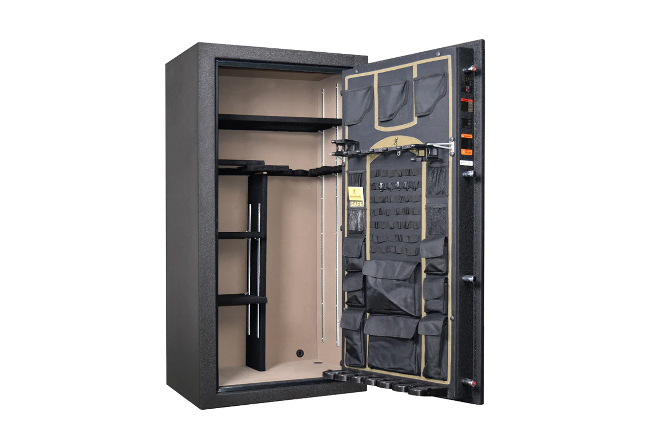 Appreciate the straightforward security of a Yellowstone® safe, complete with a Quick Access Barrel Rack, convenient felt shelving, Force Deflector Locking System, plus a 12-gauge steel body and 10-gauge partial inner plate. Grab and go easily, and enjoy peace of mind while you’re out.