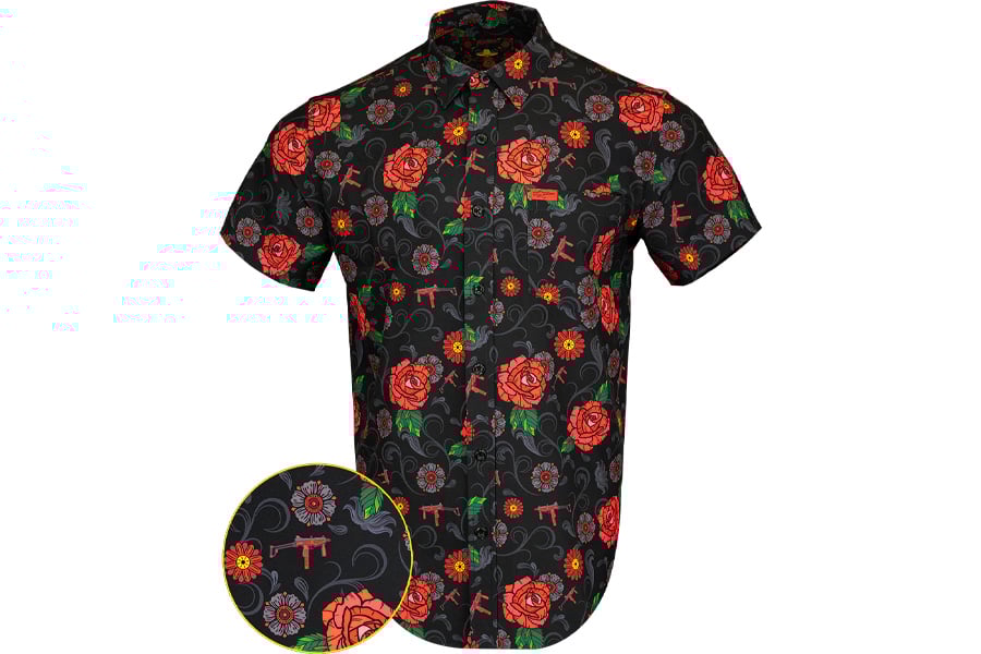 This pre-owned Retro Rifle men’s button-up shirt is in excellent condition, showing minimal signs of wear. Designed with a fun and bold aesthetic, it features a multicolor pattern with an army, patriotic, and retro-inspired theme. The short sleeve, button-down collar style makes it perfect for casual outings, summer wear, or everyday comfort.