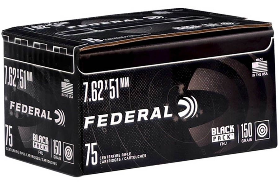 The Federal Black Pack 7.62mm NATO 150 gr FMJ is a range-focused, training-grade load built for affordable, consistent performance. With a 150-grain full metal jacket projectile, reloadable brass cases, and a non-corrosive formulation, this ammunition is ideal for high-volume practice, sighting, and tactical drills in AR-10 style platforms, bolt-action rifles, and other 7.62mm NATO chambers.